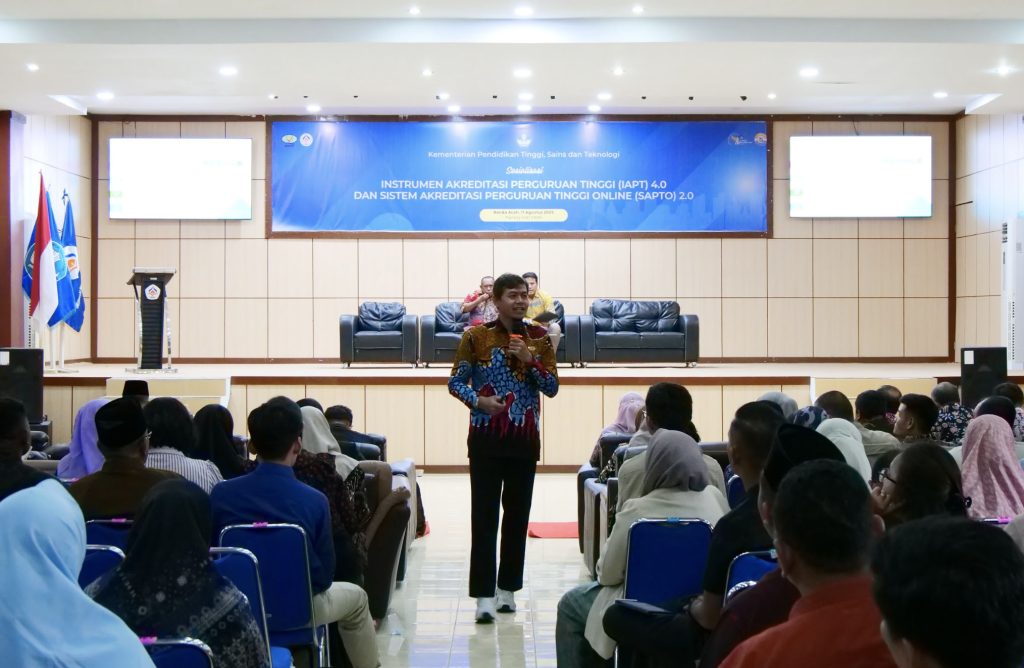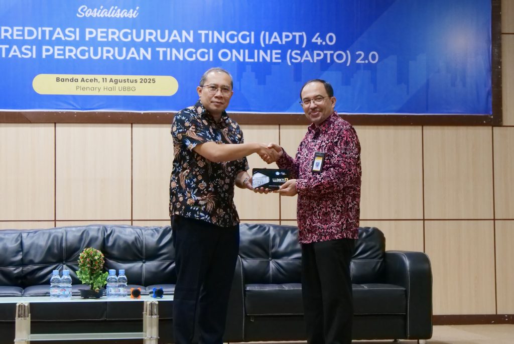 Banda Aceh – Lembaga Layanan Pendidikan Tinggi (LLDikti) Wilayah XIII bekerja sama dengan Badan Akreditasi Nasional Perguruan Tinggi (BAN-PT) dan Universitas Bina Bangsa Getsempena (UBBG) menggelar Sosialisasi Instrumen Akreditasi Perguruan Tinggi (IAPT) 4.0 dan Sistem Akreditasi Perguruan Tinggi Online (SAPTO) 2.0, Senin (11/8/2025) di Plenary Hall Kampus UBBG.